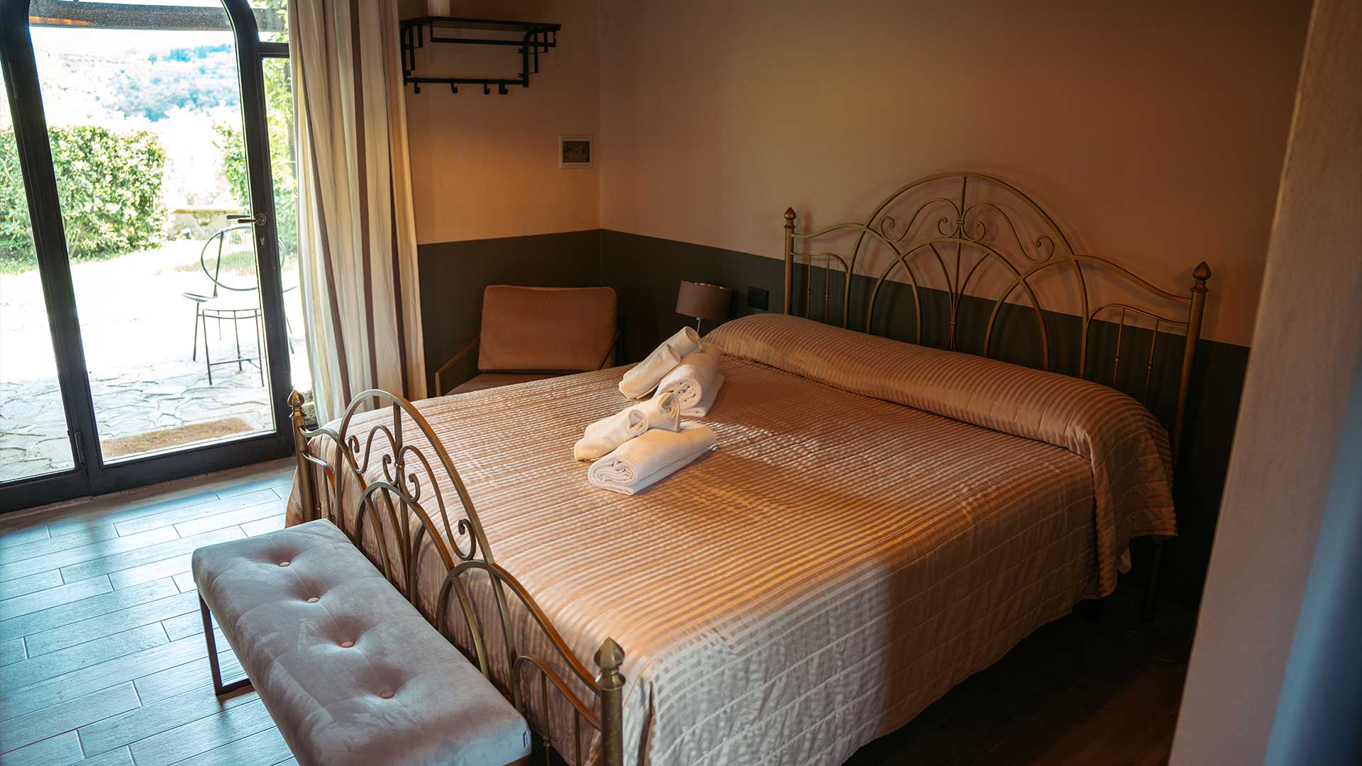 Disponiamo di camere matrimoniali, triple e quadruple (alcune dotate di giardino privato) e di una Villa indipendente.